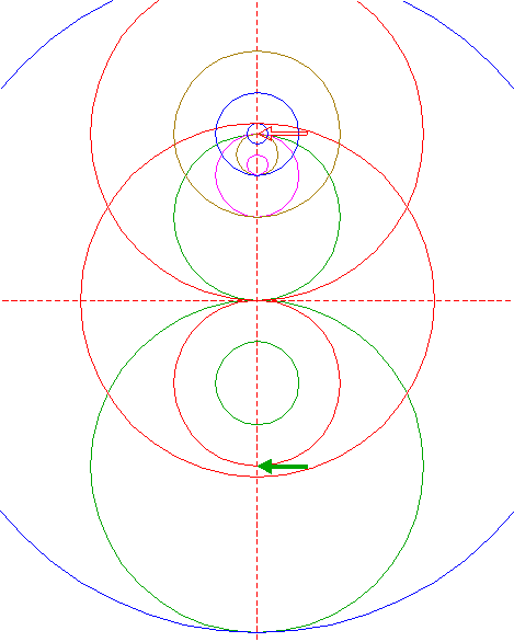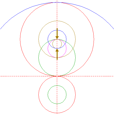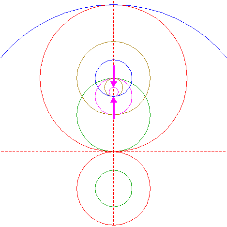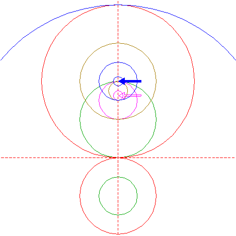 | Construct a circle concentric to circle 1, tangent to circle 22 at the lefthand side. (For clarity, some of the results of previous steps are removed temporarily). |