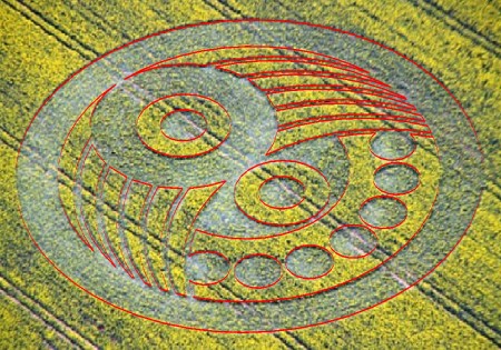 | Remove from circles 1, 2, 12, 17, 18 and 19, all redundant parts not present in the formation itself, to yield the pattern as shown. |