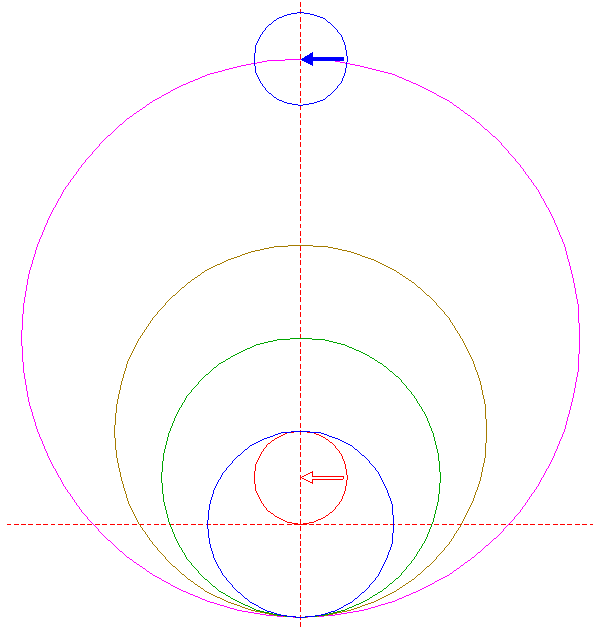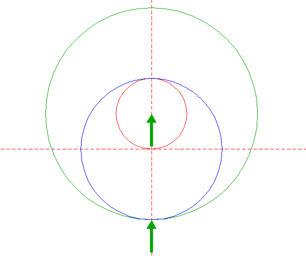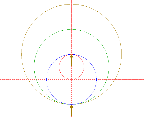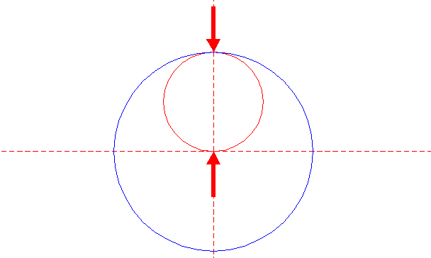 | Construct a circle centered at the upper intersection of circle 1 and the vertical centerline, tangent to circle 1 at the lower side. | ||