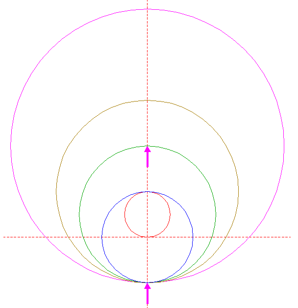 | Construct a circle concentric to circle 15, tangent to upper circle 62 at the upper side. | ||