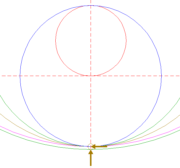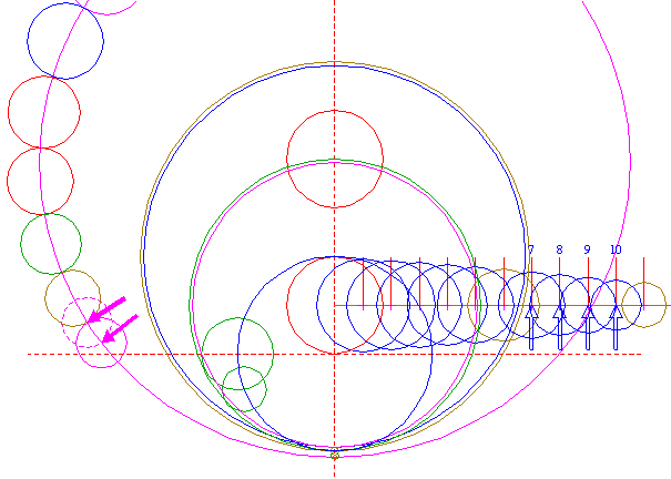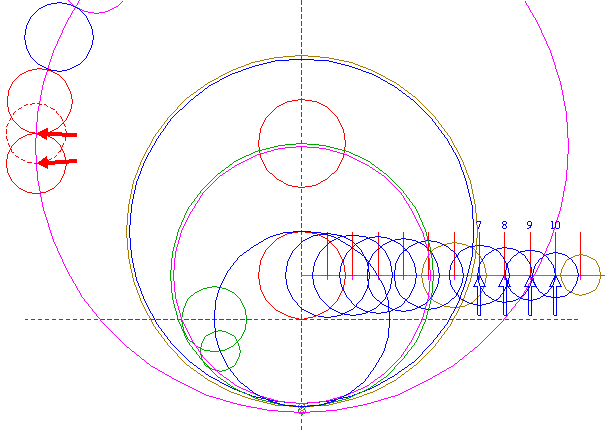 | Construct a circle centered at the lower intersection of circle 1 and the vertical centerline, tangent to circle 8 at the lower side. | ||