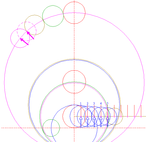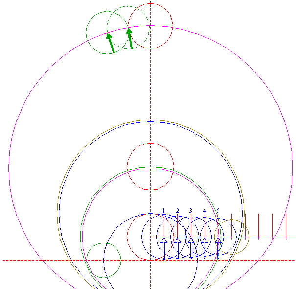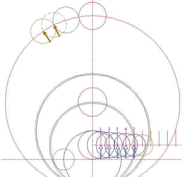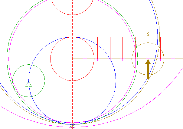 | Copy circle 26 nr. 5 to the lower intersection of circles 15 and 30, and move this circle to its own corresponding intersection. | ||