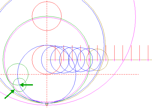 | Copy circle 26 nr. 2 to the lefthand intersection of circles 15 and 27, and move this circle (copy and delete original) to its own corresponding intersection. | ||