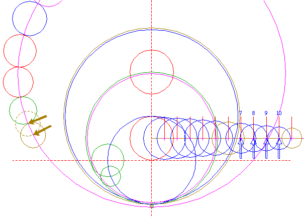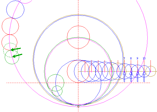 | Copy circle 36 nr. 10 to the lower intersection of circles 15 and 39, and move this circle to its own corresponding intersection. | ||