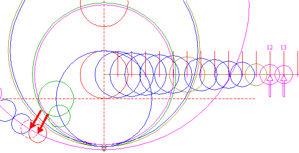 | Copy circle 45 nr. 12 to the lower righthand intersection of circles 15 and 41, and move this circle to its own corresponding intersection. | ||