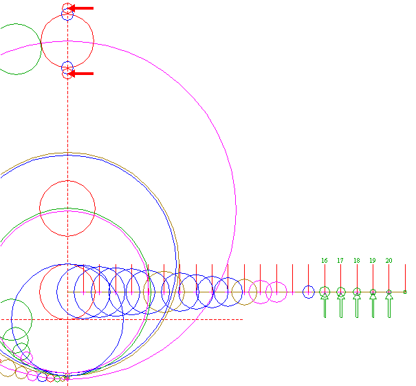| Copy circle 53 nr. 20 to the righthand intersection of circles 15 and 58, and move this circle to its own corresponding intersection. | ||