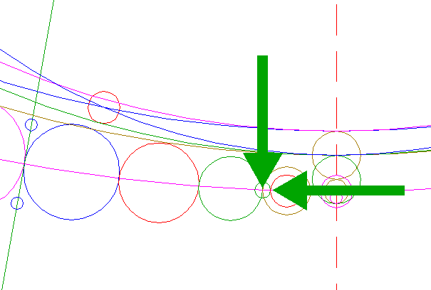 | Copy circle 53 nr. 18 to the righthand intersection of circles 15 and 56, and move this circle to its own corresponding intersection. | ||