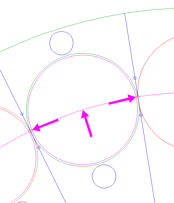 | Construct two circles concentric to circle 15, tangent to circle 83 at both sides. See detail. | ||
