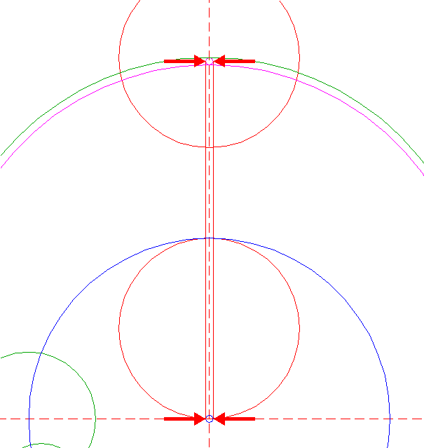 | Copy circle 50 two times, to the intersections of circle 27 and the vertical centerline. | ||