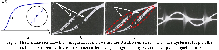 Barkhausen’ jumps form «packages of magnetic noise» (fig. 1d).