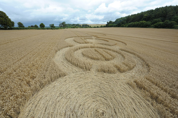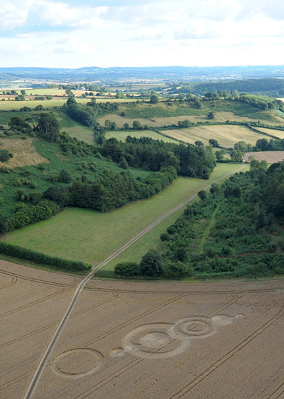 also from above. The crop circle, not straight (see pictures) was