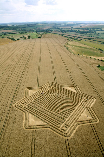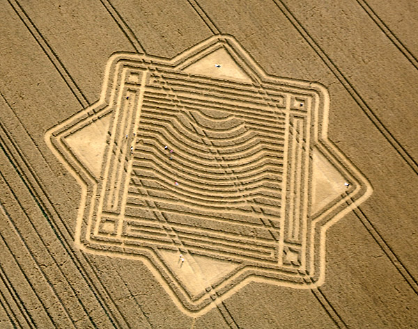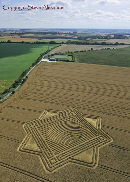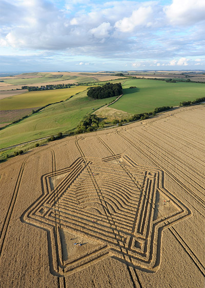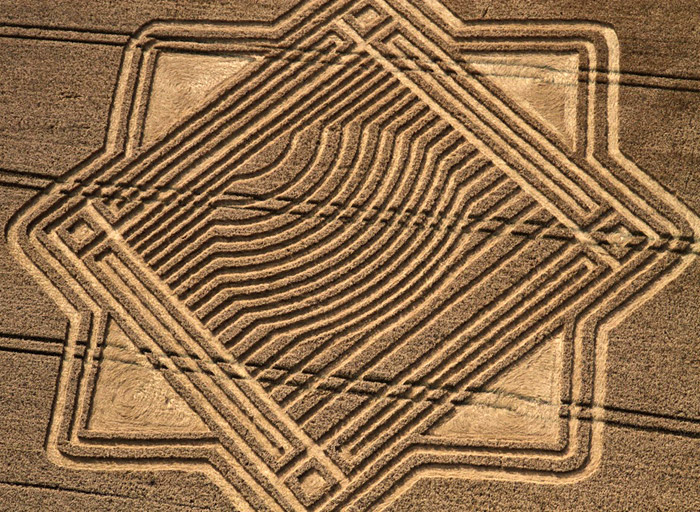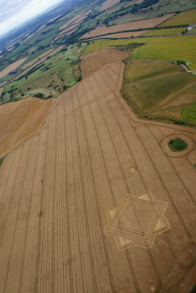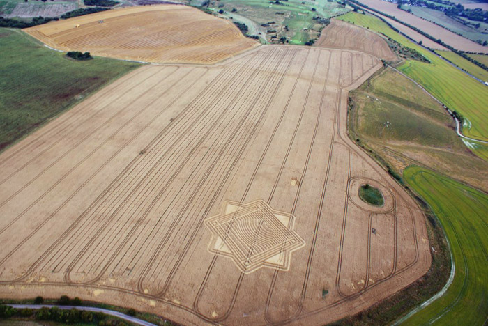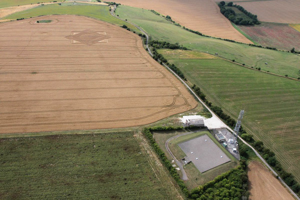 This sensational design is directly next to an ancient barrow and a radio mast. The circle is located on top of the ridge. It was discovered by Madelien Scholten.