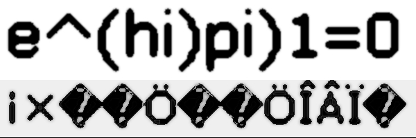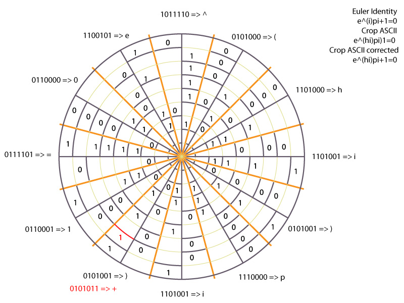 Which when converted into ASCII gives us: e^(hi)pi)1=0