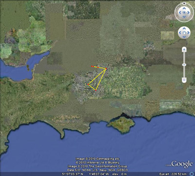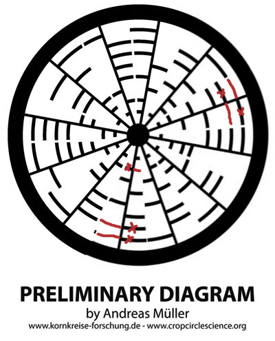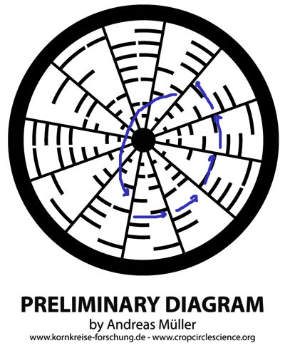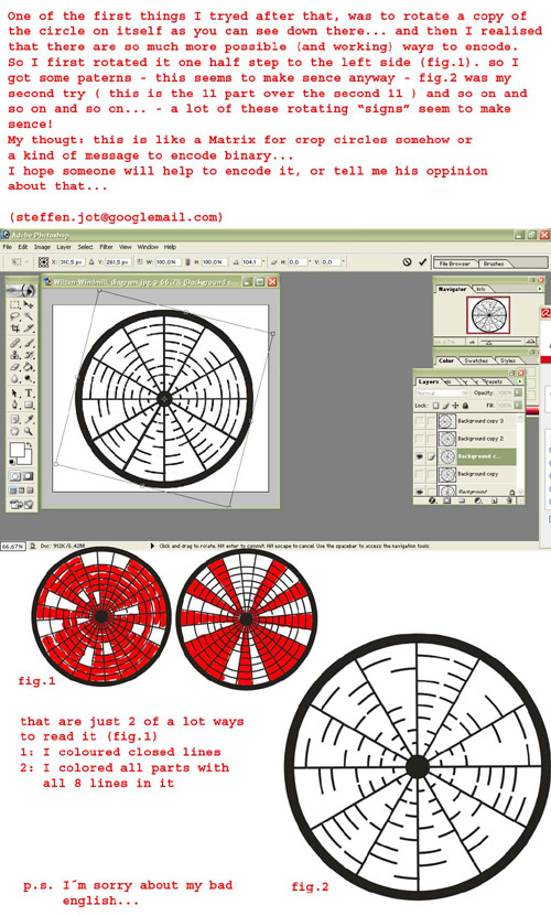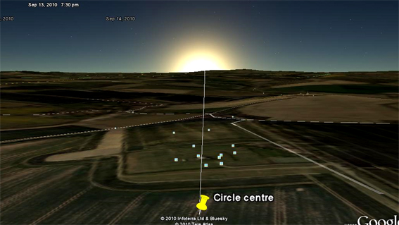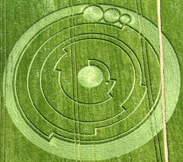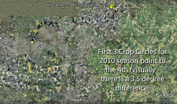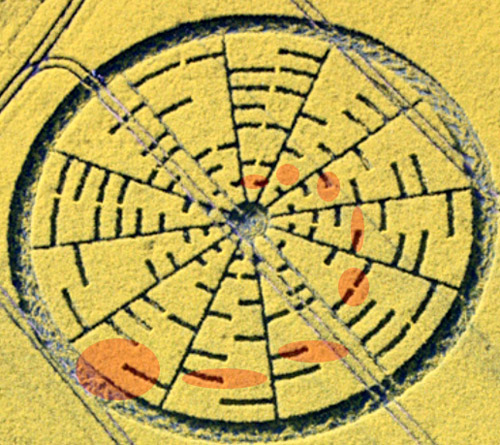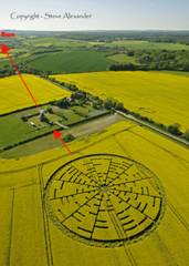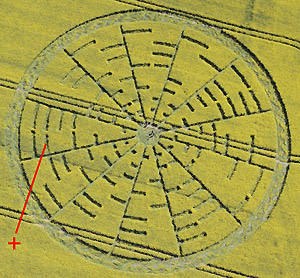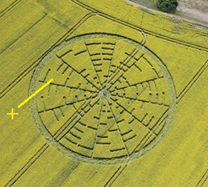 Hill crop circle, pointed twice, by 2 different crop researchers.