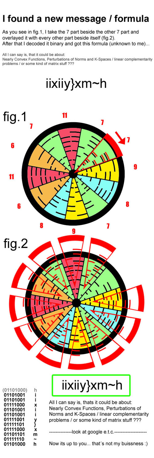 "e^(hi)pi)1=0" can represent the DNA helix and there are also hints