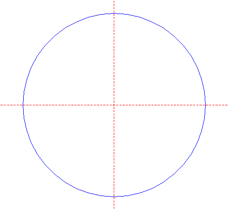 | Draw a circle. Draw and extend the horizontal and vertical centerlines. |