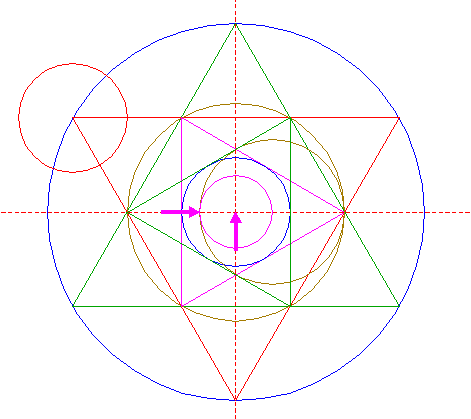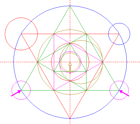 | Copy circle 14 two times, to the lower angular points of triangle 3. |
