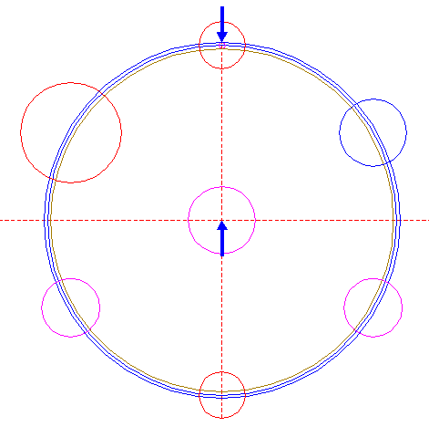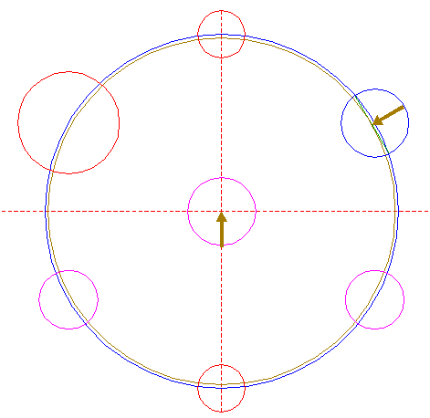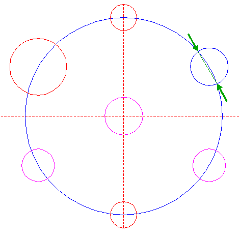 | Construct a circle centered at the upper intersection of circle 1 and the vertical centerline, tangent to circle 19 at the upper side. |