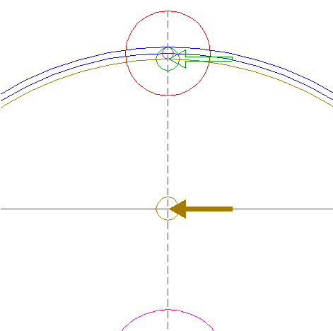 | Construct a circle centered at the lower intersection of circle 20 and the vertical centerline, tangent to it at the upper side. |