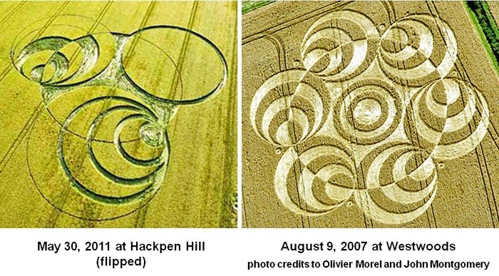 “cone” shapes at Hackpen Hill with a circle and four