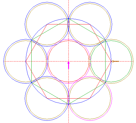 | Copy circle 20 five times, to the other angular points of hexagon 21. |