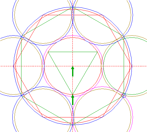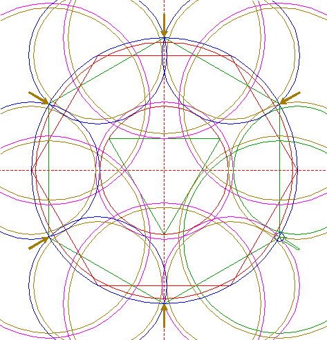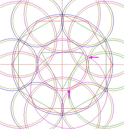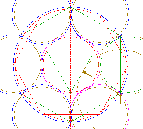 | Construct the inscribed equilateral triangle of circle 7, pointing down. |