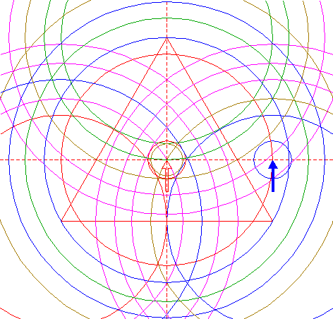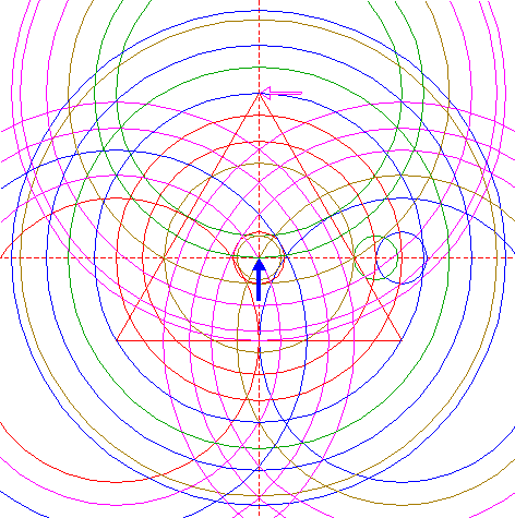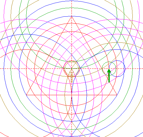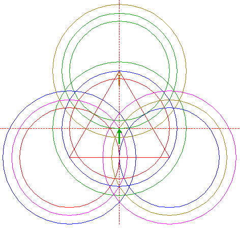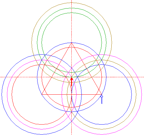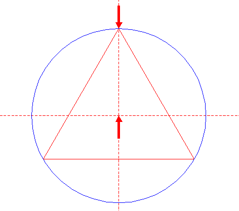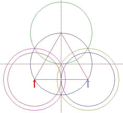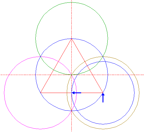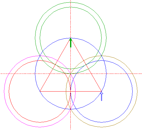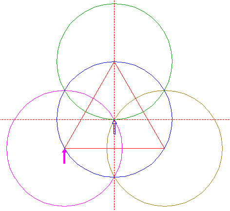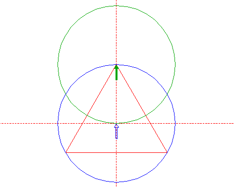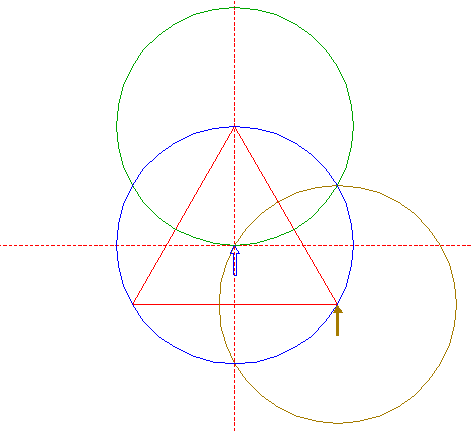 2. | ![]() | Construct the inscribed equilateral triangle of circle 1, pointing up. |