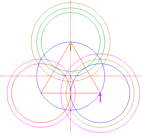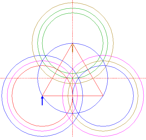 20. | ![]() | Copy circles 16 and 19 three times, to the angular points of triangle 2. |