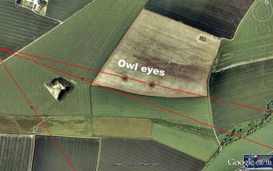 mouth seemingly pointing to either one or two alignments, 1. The owl