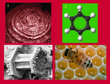 Snowflakes, beehive combs, basalt columns are natural examples of the