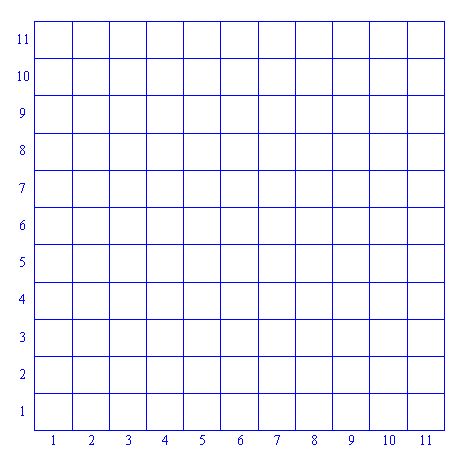 | Draw an eleven by eleven grid of connected squares. Number the columns from left to right, and the rows from bottom to top 1 to 11. |