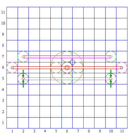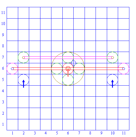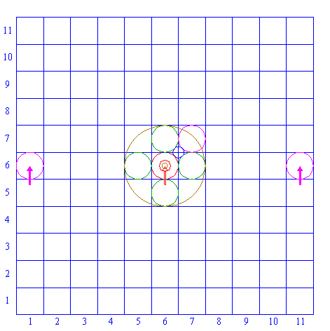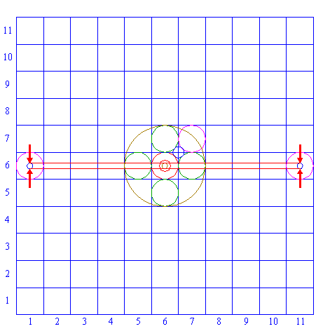 | Copy circle 2 two times, to the centers of squares (6,1) and (6,11). |