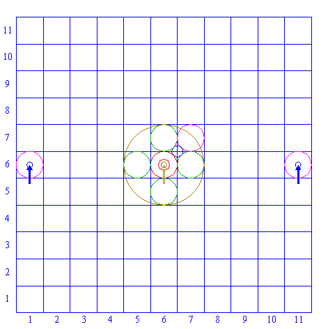 | Copy circle 2 two times, to the centers of squares (1,6) and (11,6). |