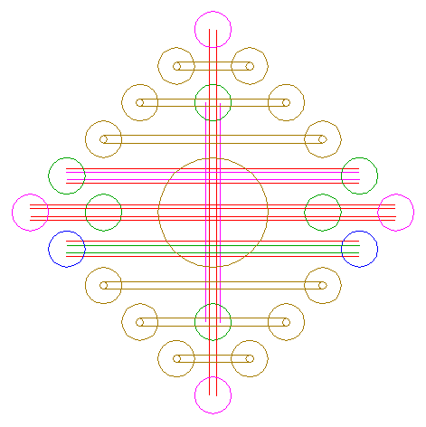 | Copy circle 6 six times, to the centers of circles 10, 13 and 16. |