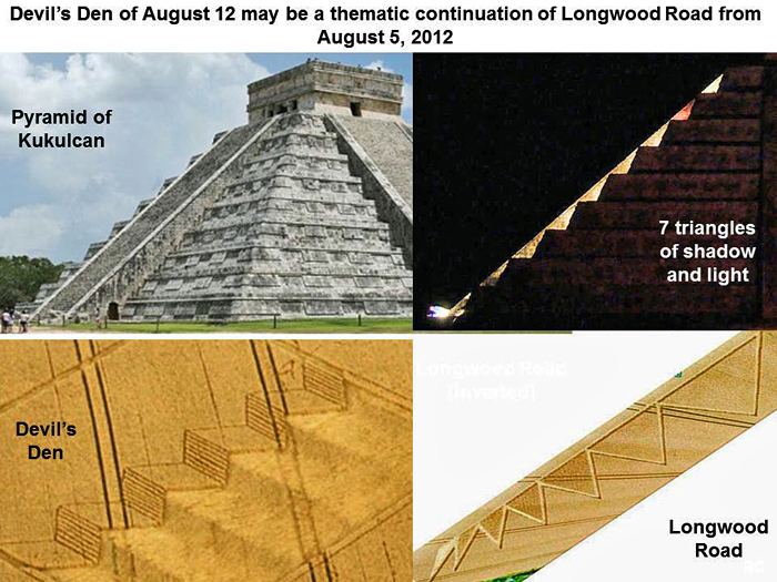 multi-level “stairway” which was drawn in crops appears “broken” or