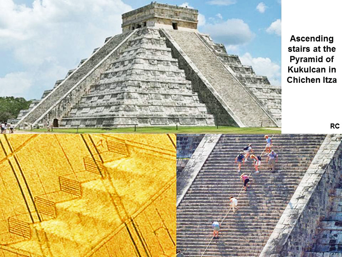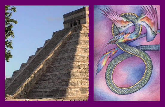 Quetzalcoatl as the shadow serpent appearing on the pyramid and as