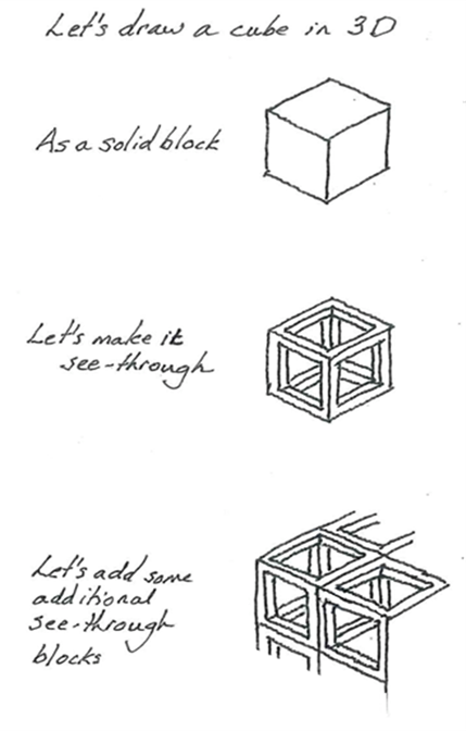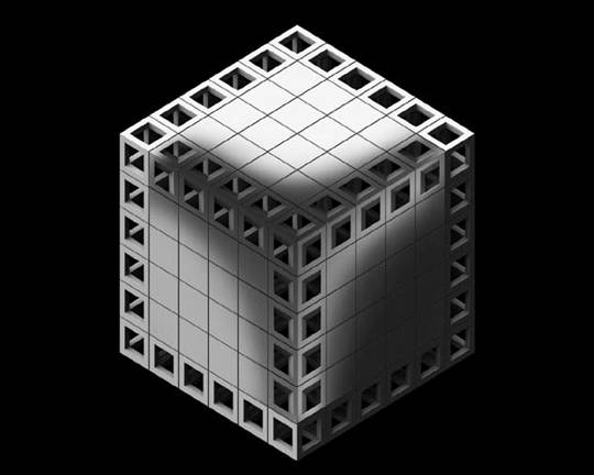 mini-cubes are seen to exist beyond the surface of the cube—beyond the
