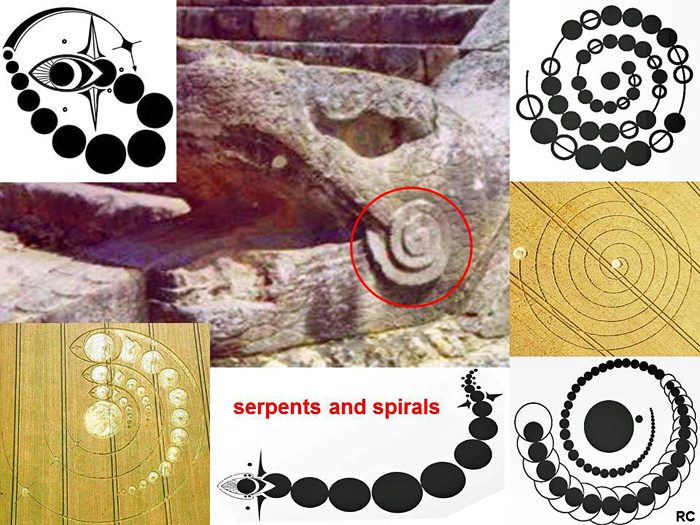 Symbols in English or Italian crop pictures for the Feathered Serpent (Kukulcan or Quetzalcoatl) returning to Earth?
