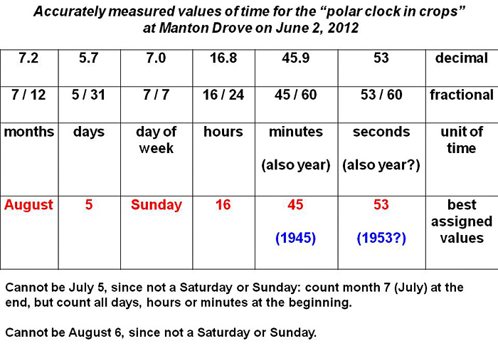 major dilemma concerning a “polar clock” shown in crops at Manton