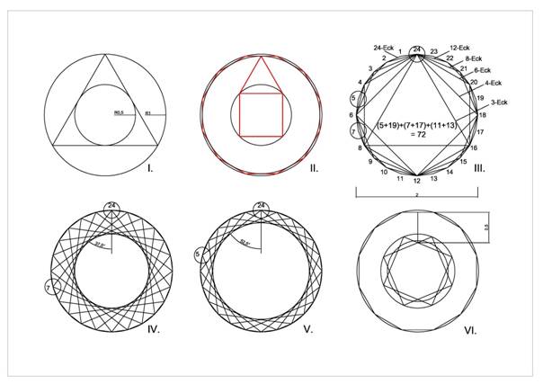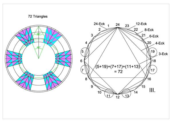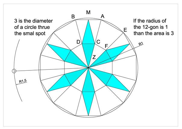 12-gon. One Segment of the 6 folded star is 1/24 of the big 12-gon.