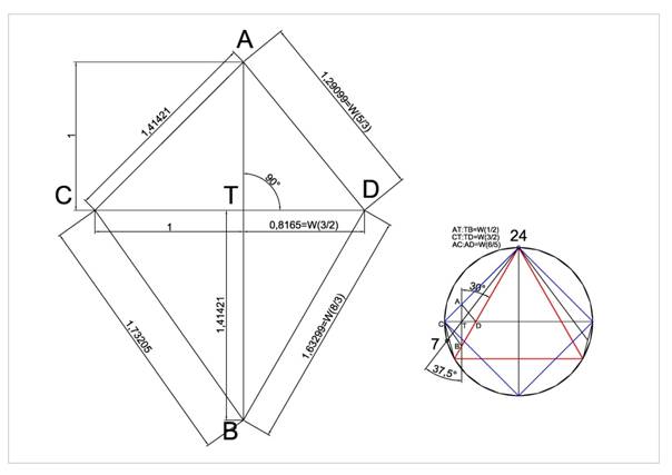 and 37,5°, as shown at the sketch. The line 24-7 divides the horizontal
