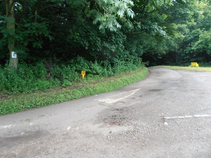 the triangle area where you park and walk along the road where the