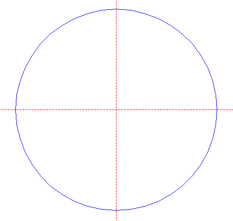 | Draw a circle. Draw and extend the horizontal and vertical centerlines. |