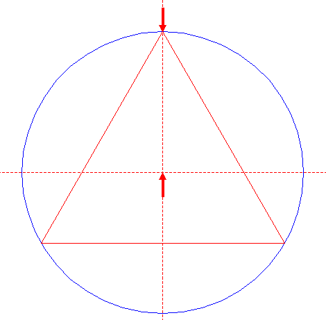 | Construct the inscribed equilateral triangle of circle 3, pointing up. |