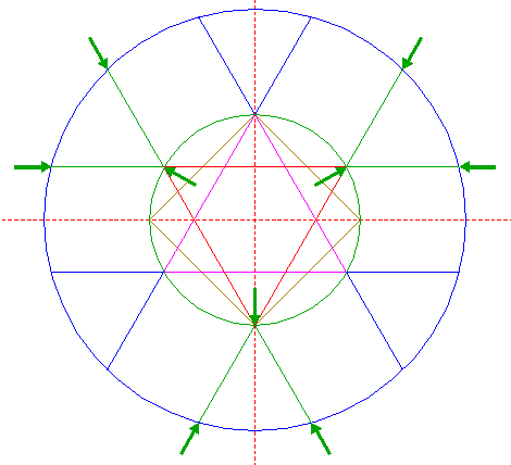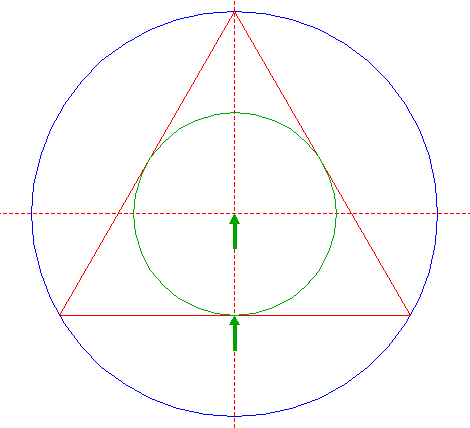 | Construct the inscribed equilateral triangle of circle 3, pointing to the right. |