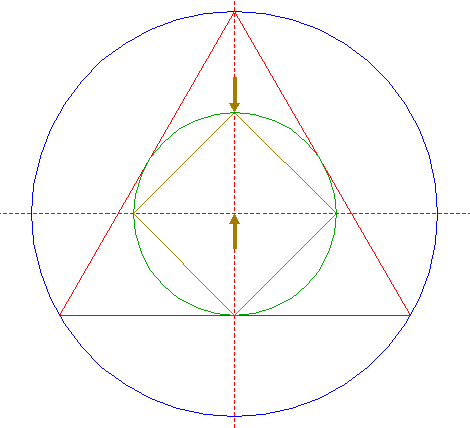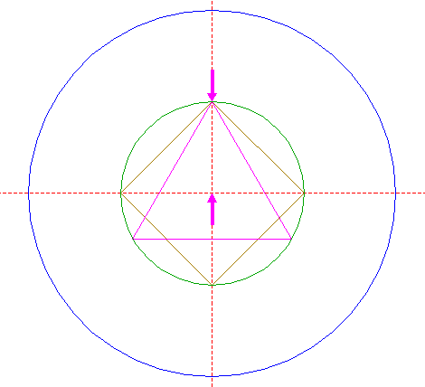 | Construct the inscribed square of circle 3, pointing up. |