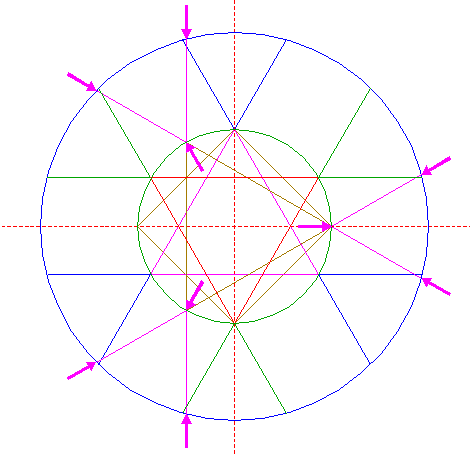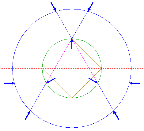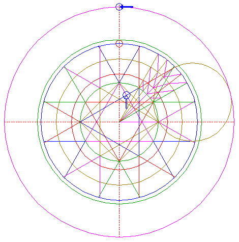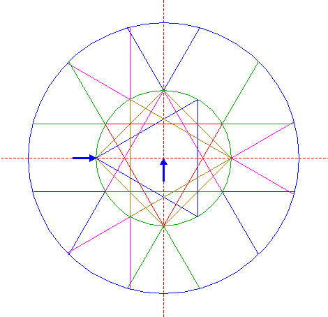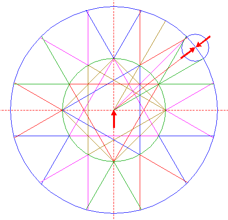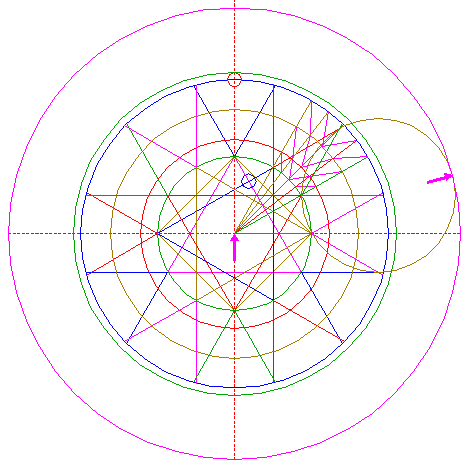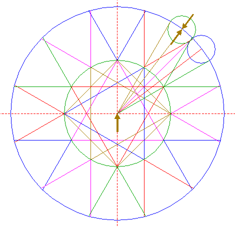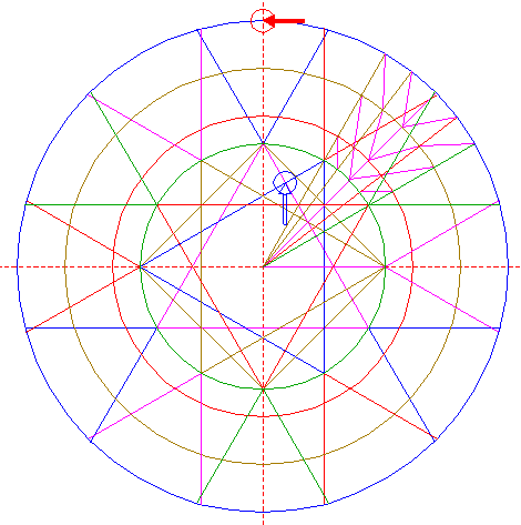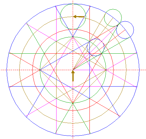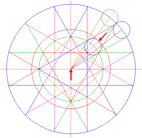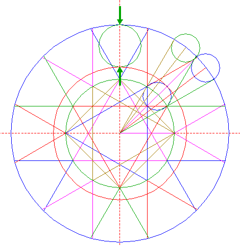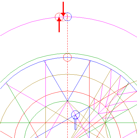 | Copy circle 26 to the upper intersection of circle 1 and the vertical centerline. |