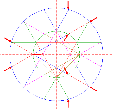 | Copy circle 3 to the righthand intersection of lines 8 and 10. |