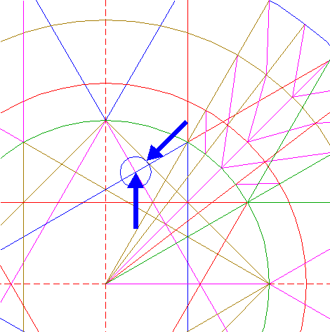| Draw a line from the center of circle 1 to the righthand intersection of circle 3 and the horizontal centerline. |