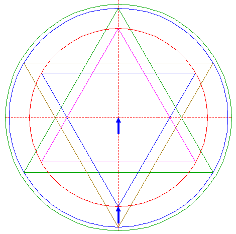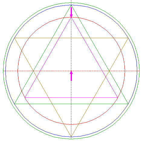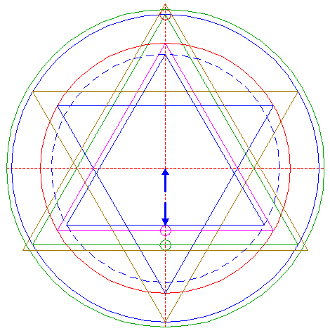 | Construct a equilateral triangle (the circumscribed circle of which is) concentric to circle 1, pointing up, and with its lower side tangent to circle 15 at the upper side. |